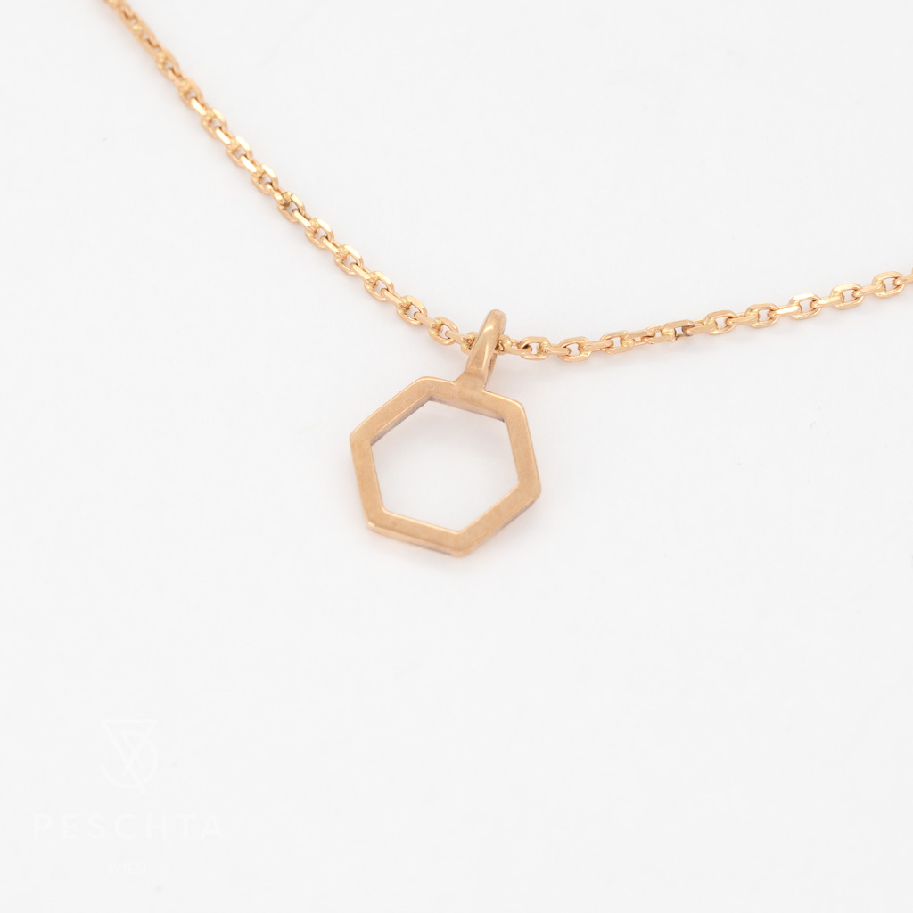 | Beschreibung: | Halskette aus 14 Karat Roségold mit einem 6 – Eck Anhänger |