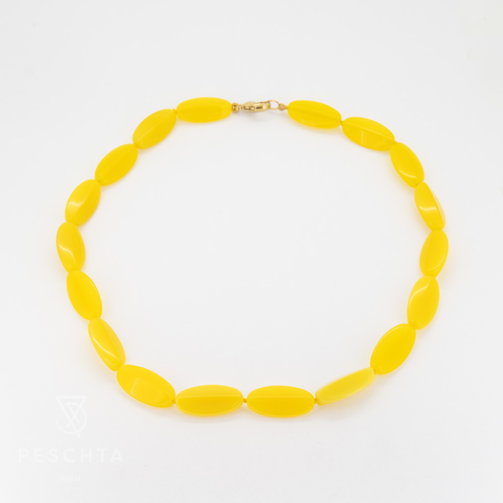 Halskette mit Gelbachat Linsen Breite: 1,2 cm Länge: 48 cm