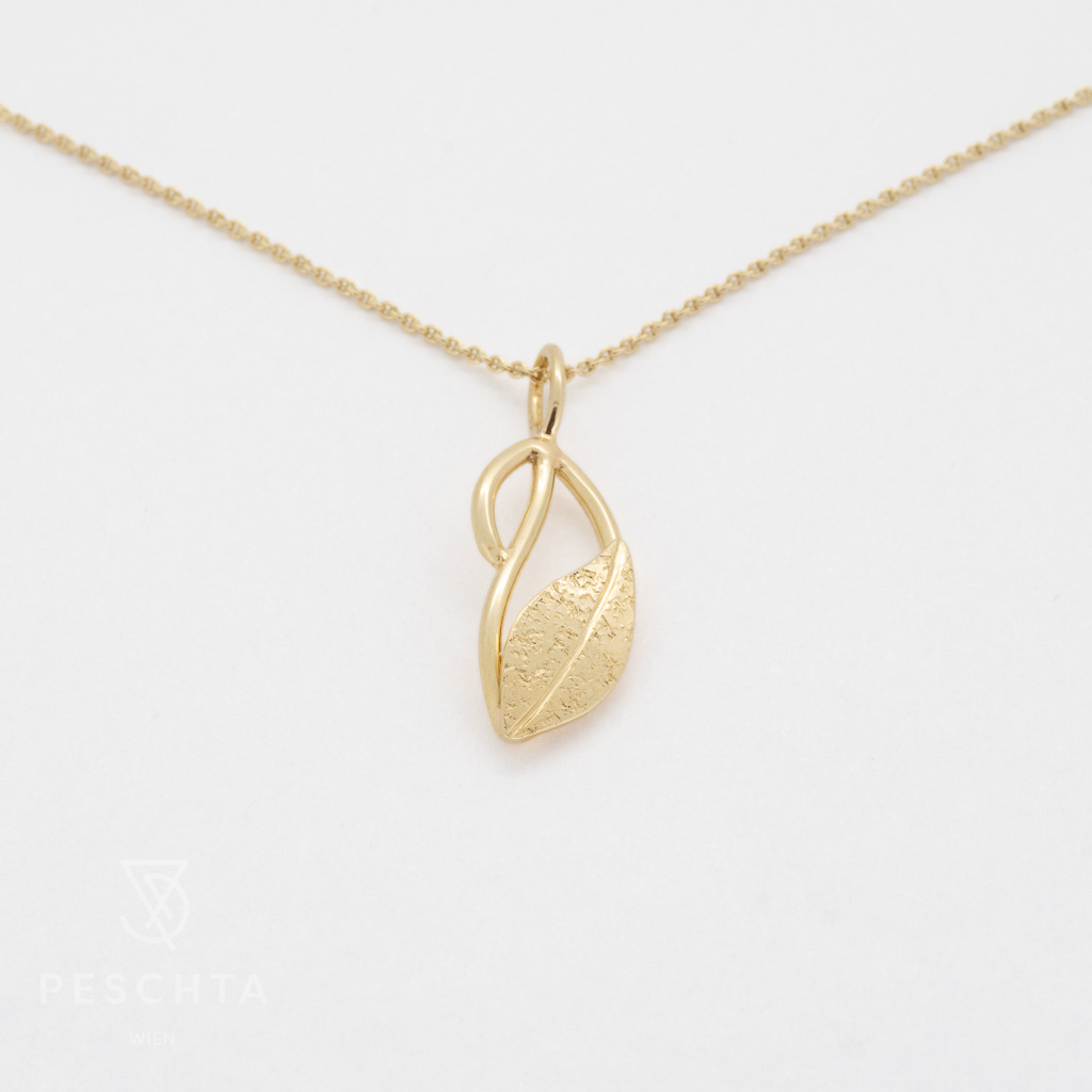 | Beschreibung: | Anhänger mit einem Blatt aus 14 Karat Gelbgold |