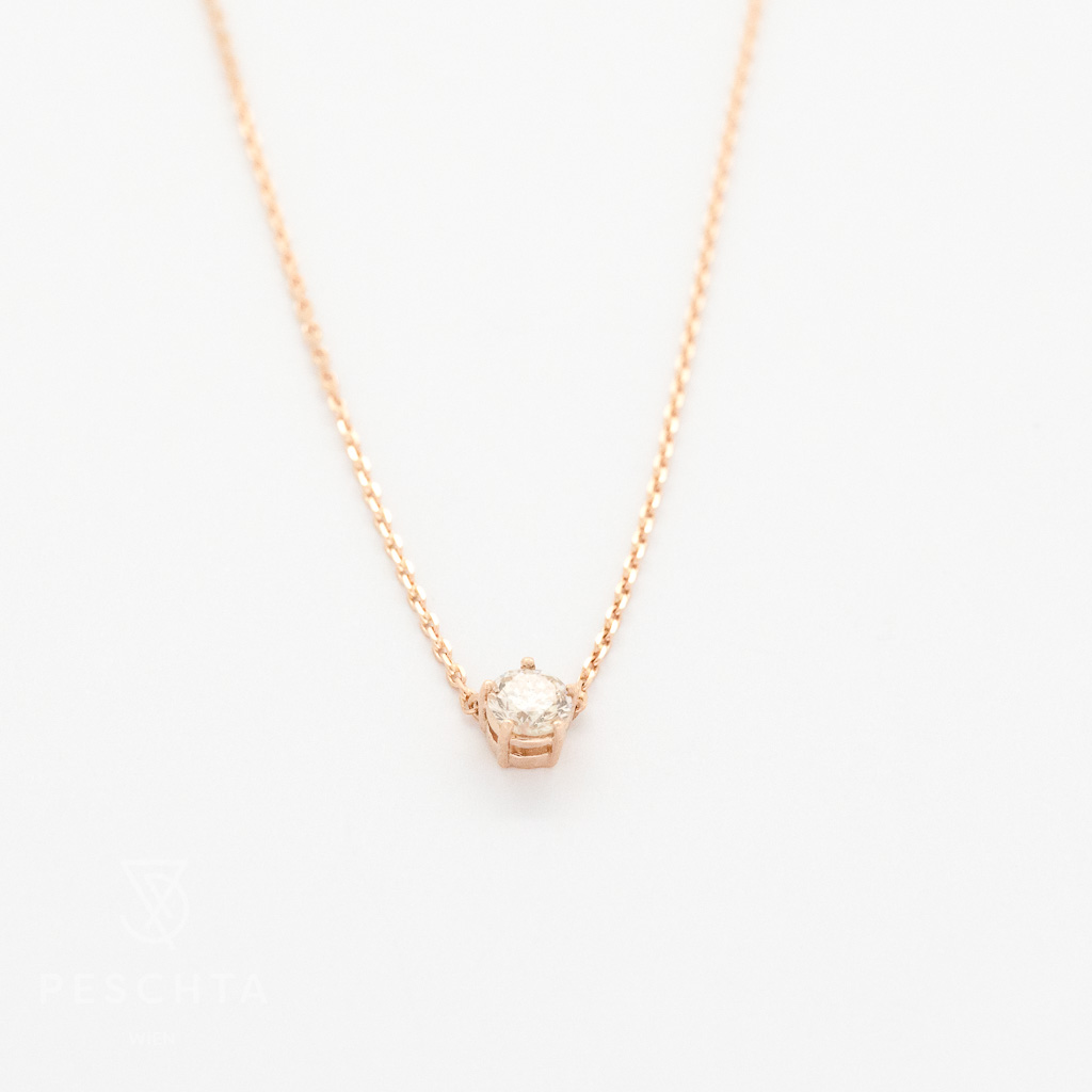 Halskette aus 14 Karat Roségold, gefasst mit einem Brillanten, Champagnerfarbe (0,280 ct.)