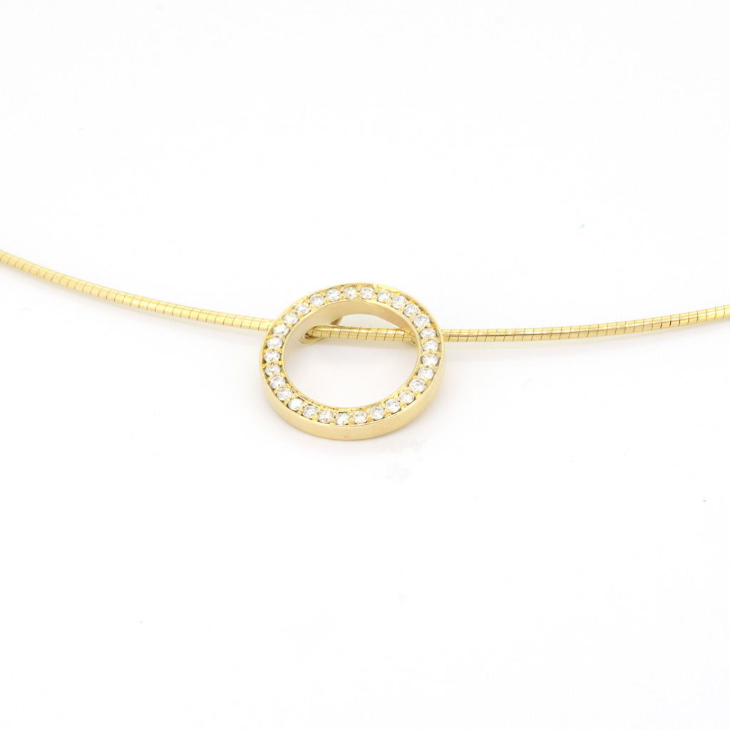 Anhänger aus 14 Karat Gelbgold, gefasst mit 32 Brillanten (gesamt: 0,32 ct.)