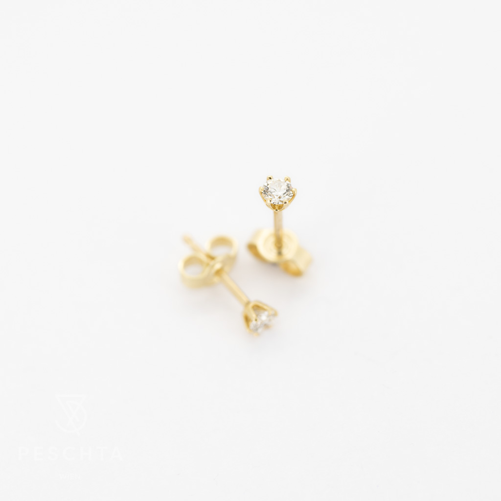 Ohrstecker aus 14 Karat Gelbgold, gefasst mit je einem Brillanten (Gesamt: 0,16 Karat) 6 Krappenfassung
