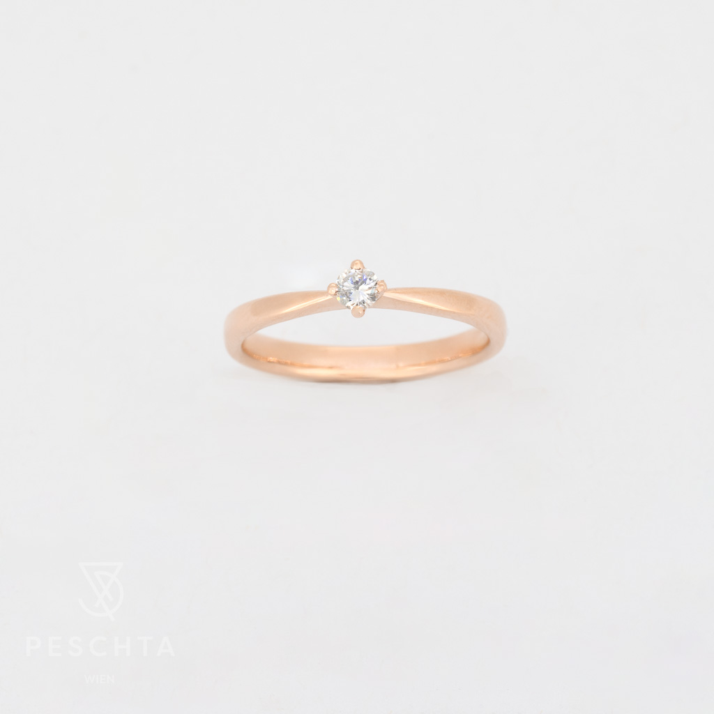 Solitärring aus 14 Karat Roségold, gefasst mit einem Brillanten (0,12 ct.)
