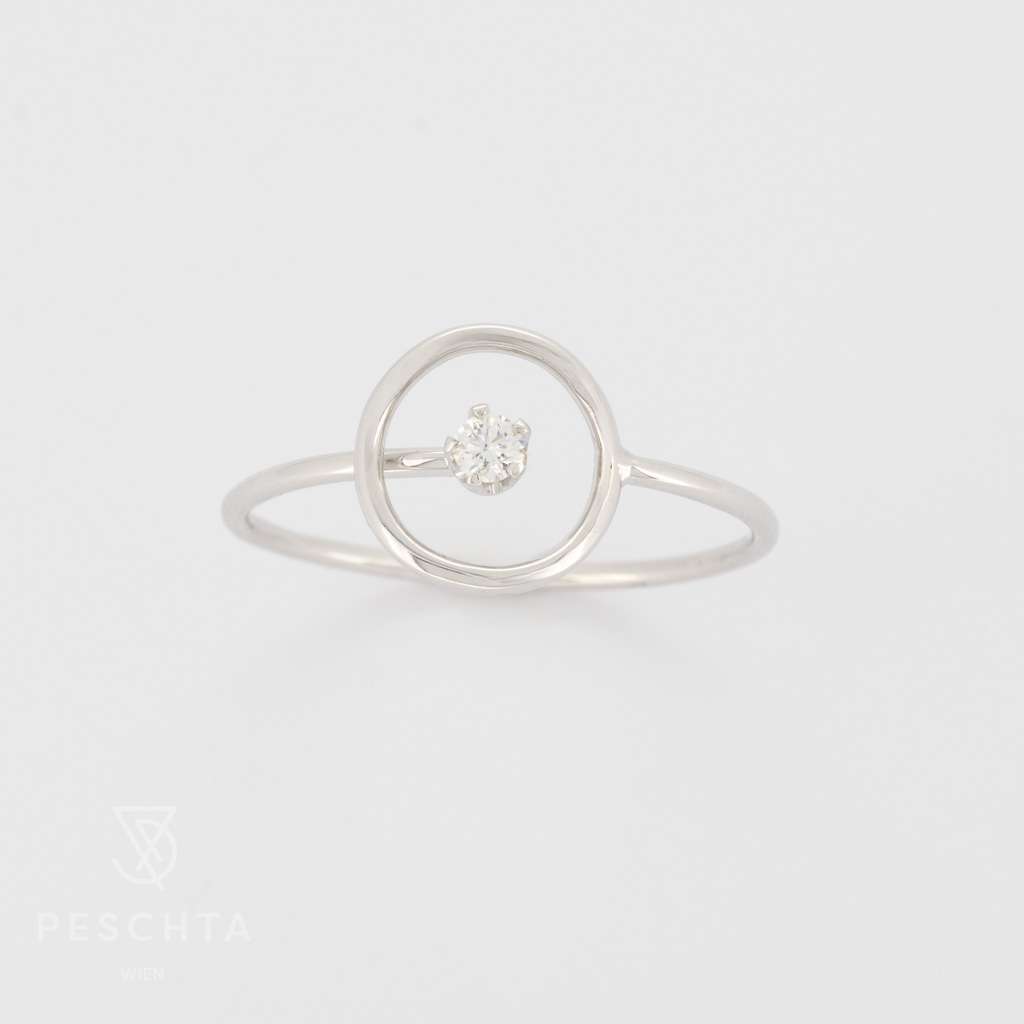 Ring mit einer beweglichen Ringschiene aus 14 Karat Weißgold, gefasst mit einem Brillanten (0,06 ct.)