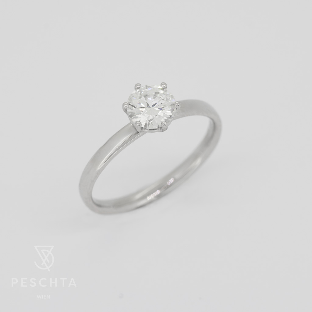 | Beschreibung: | Solitärring aus Platin, gefasst mit einem Brillanten (0,70 ct.) |