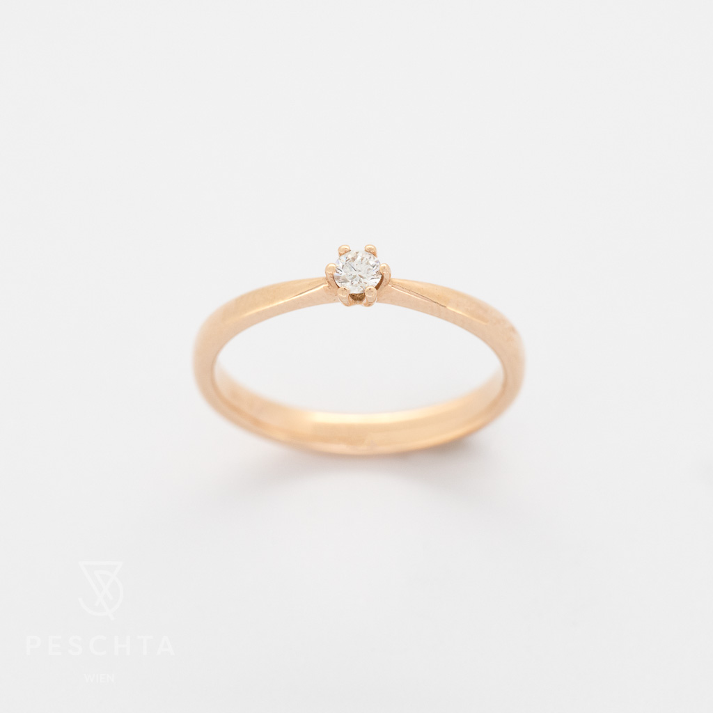 | Beschreibung: | Ring aus 14 Karat Roségold, gefasst mit einem Brillanten (0,09 ct.) |