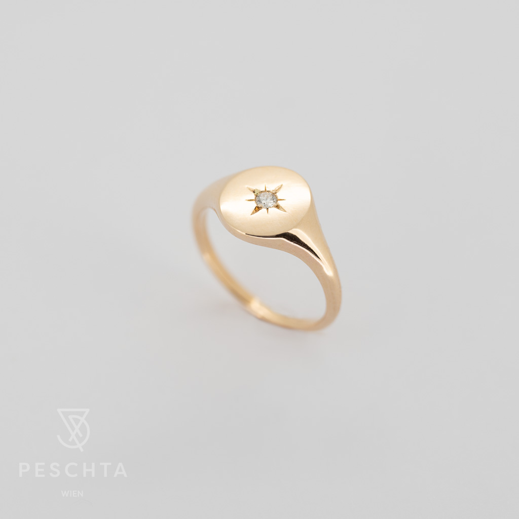 | Beschreibung: | Siegelring aus 14 Karat Roségold, gefasst mit einem Brillanten (0,030 Karat) |