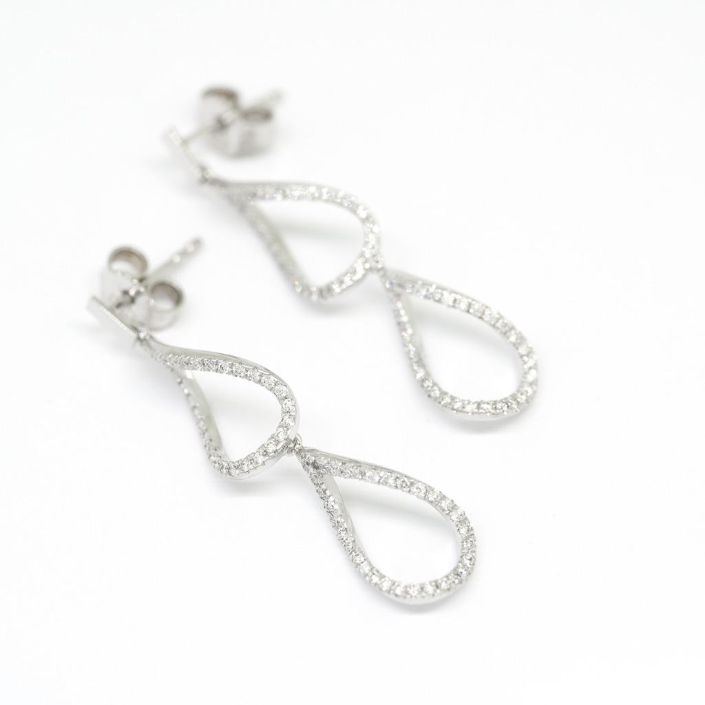 Ohrhänger aus 18 Karat Palladium Weißgold, gefasst mit 128 Brillanten (gesamt: 0,5 ct.) Länge: 3,5 cm