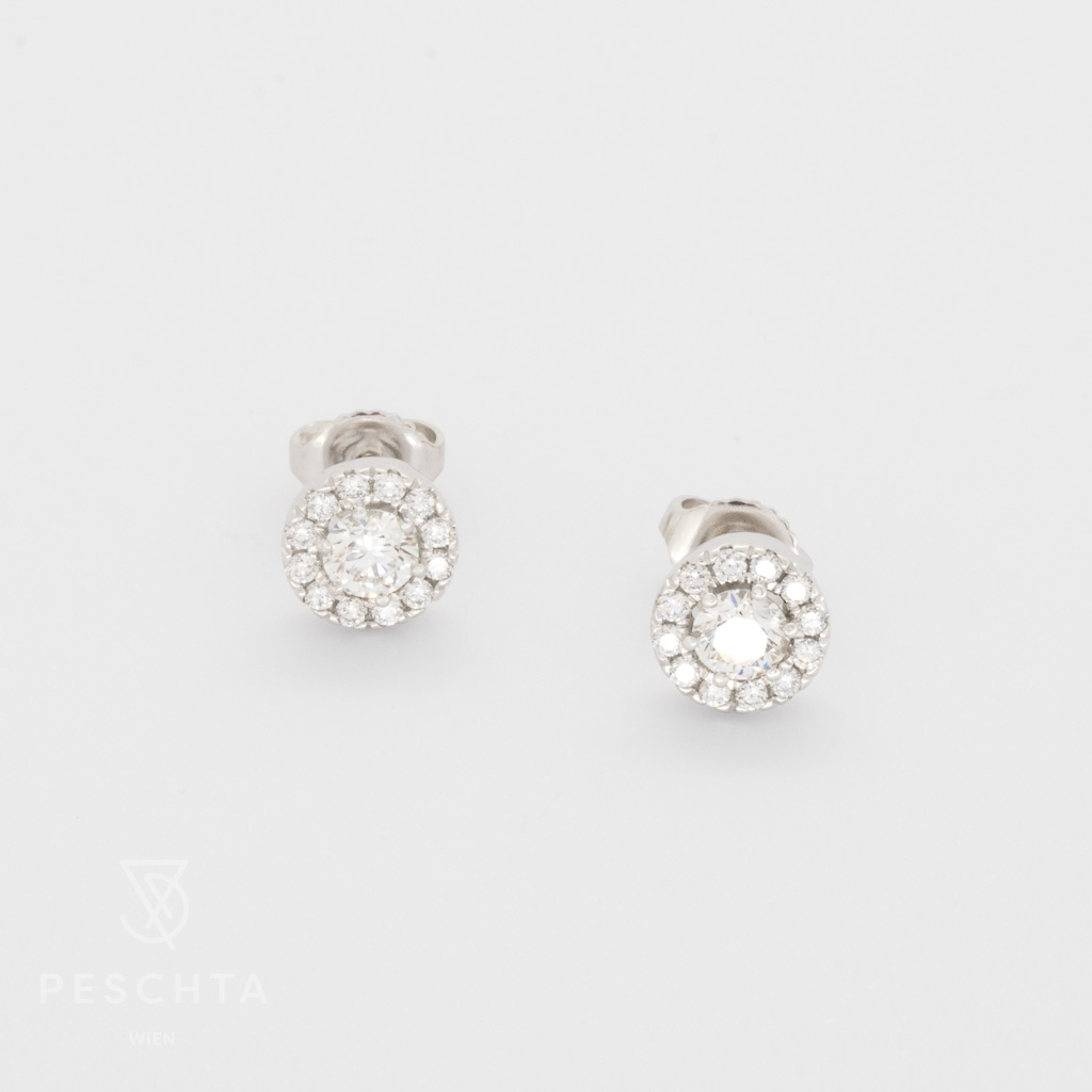 Ohrstecker aus 14 Karat Weißgold, gefasst mit 2 Brillanten (je 0,28 ct.) und 24 Brillanten (je 0,01 ct.)