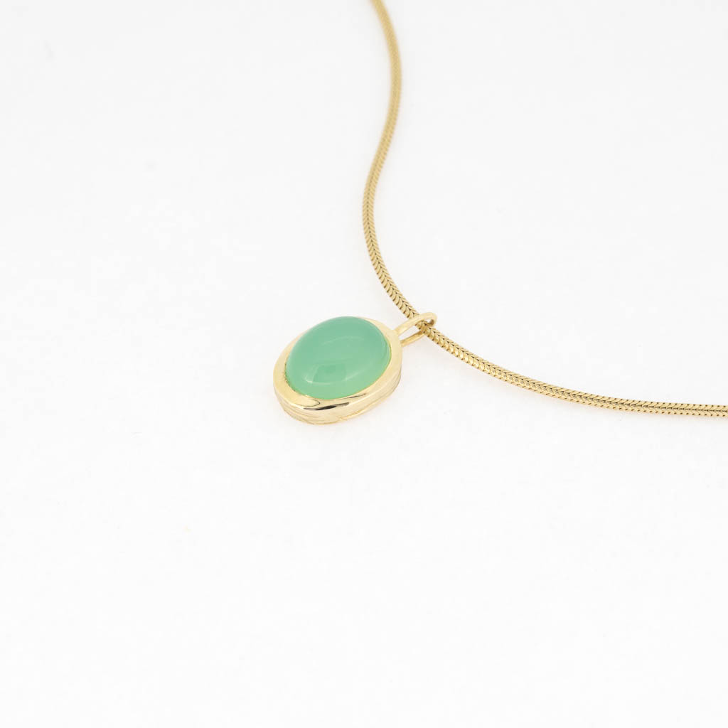Anhänger aus 14 Karat Gelbgold, gefasst mit einem hellgrünen Chrysopras