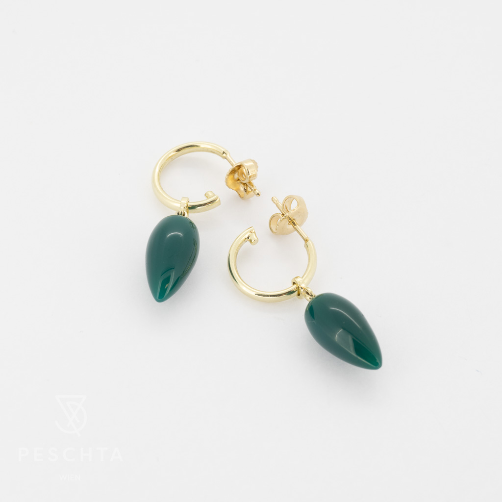| Beschreibung: | Creolen aus 14 Karat Gelbgold (Durchmesser: 1,3 cm) mit gefärbten grünen Achat Anhänger |