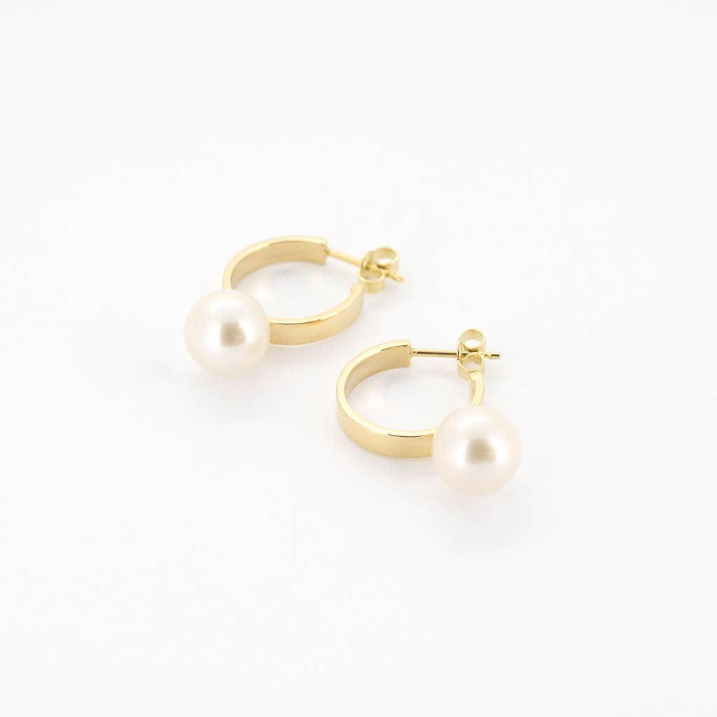 | Beschreibung: | Creolen aus 14 kt. Gelbgold mit weißen Perlanhänger. |