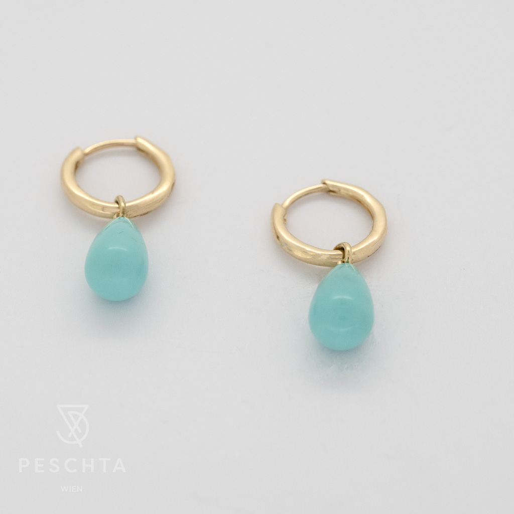 Creolen aus 14 Karat Gelbgold mit je einem Tyrkis Anhänger