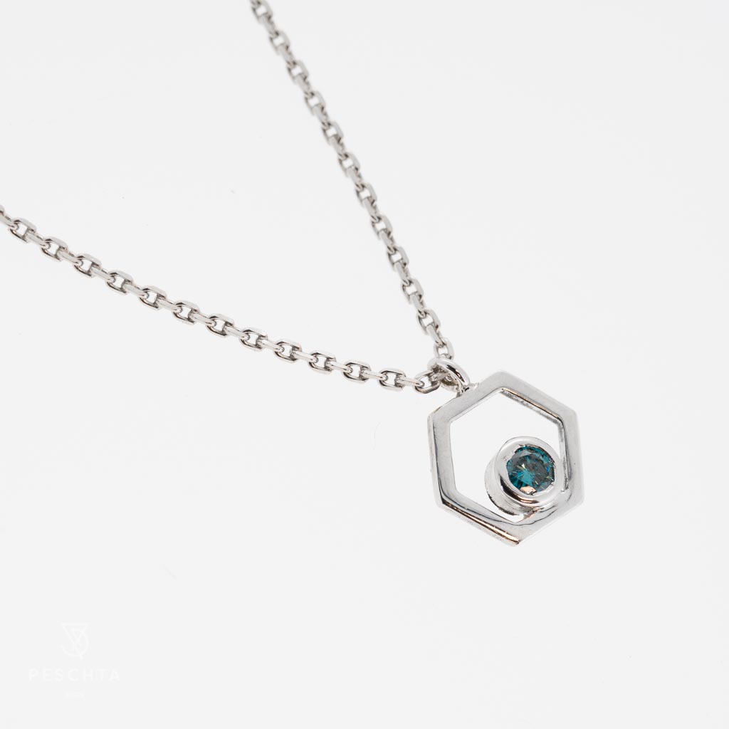 | Eigenschaften: | Blauer Diamant, 6-Eck Maße: 0,5 cm x 0,5 cm, Halskette Karree 40 cm, Stärke: 0,25 |