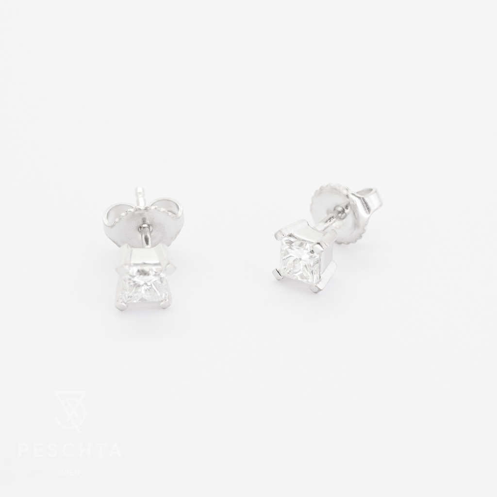 Ohrstecker aus 14 Karat Weißgold, gefasst mit 2 Princess Karree Diamanten (gesamt: 0,72 ct.)