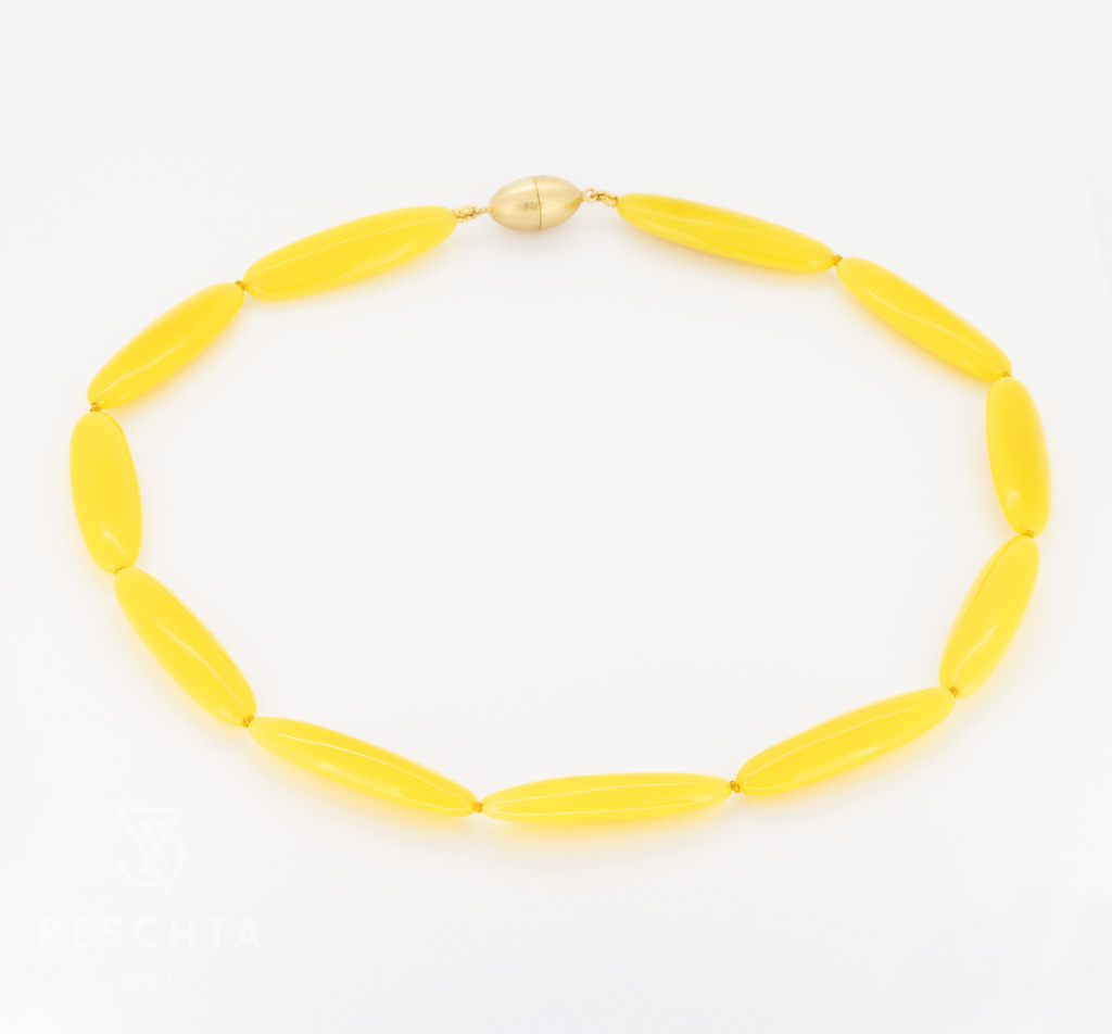 Leuchtende Gelb Achat Halskette, Breite: 1,2 cm Gesamtlänge: 50 cm