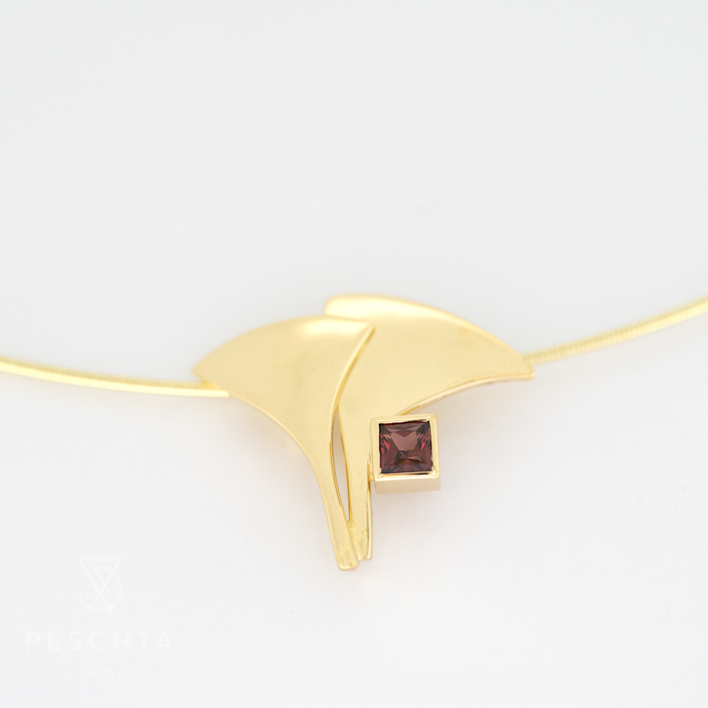 | Beschreibung: | Anhänger aus 18 Karat Gelbgold, gefasst mit einem Rhodolith |