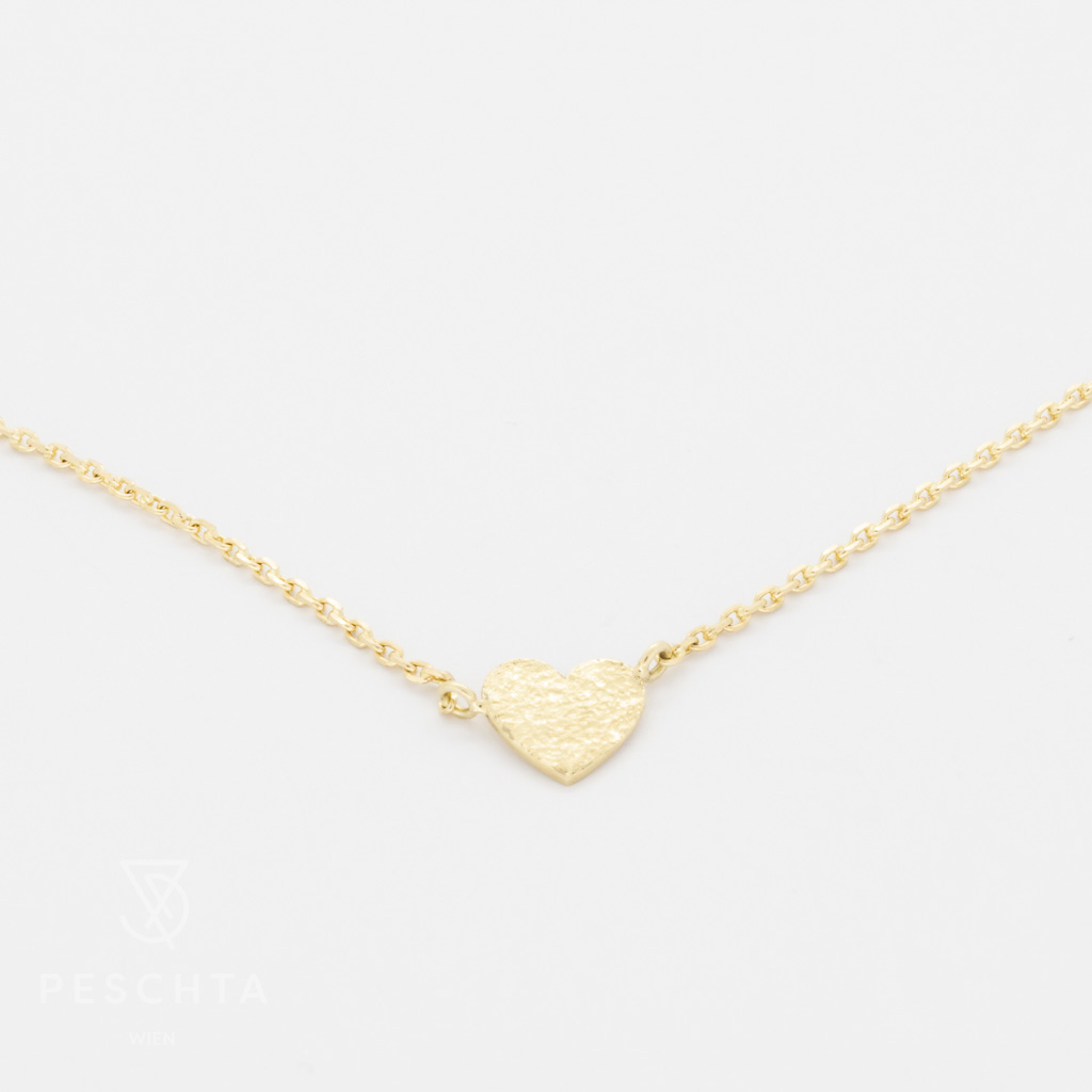 Halskette aus 14 Karat Gelbgold (Karree, Stärke: 035, 40 cm Länge) mit einem Herz