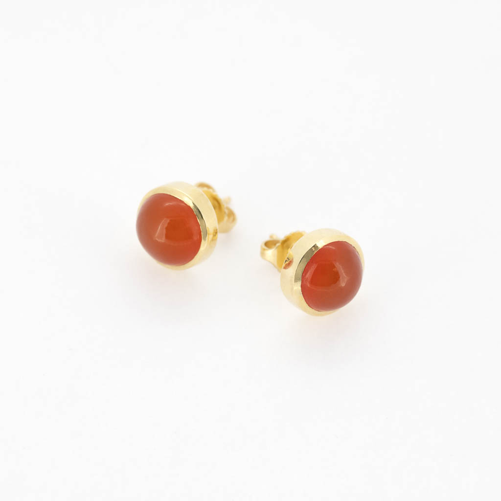 Ohrstecker aus 14 kt. Gelbgold, gefasst mit je einem runden Karneolcabochon (Durchmesser: 9 mm)