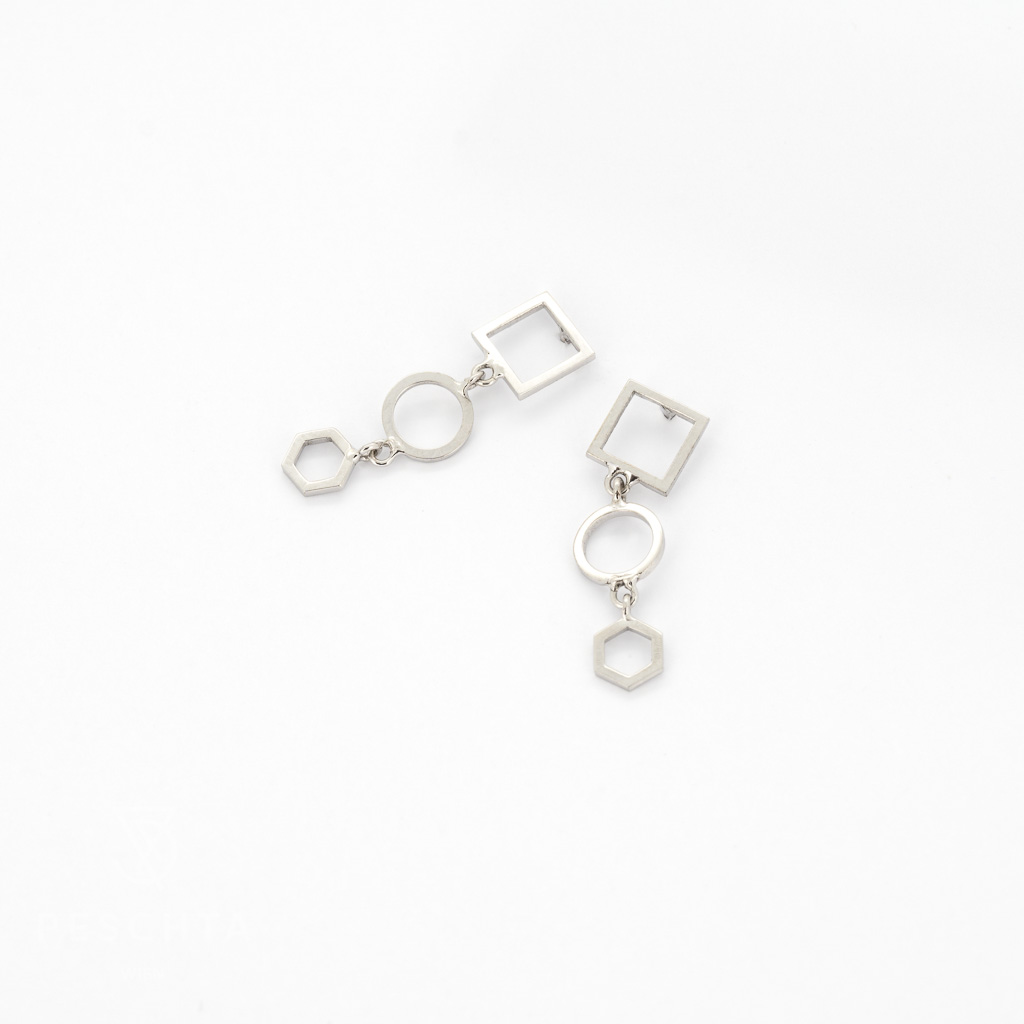 | Beschreibung: | Ohrhänger aus 14 Karat Weißgold mit je 3 Elementen (4-Eck, Kreis, 6-Eck) |