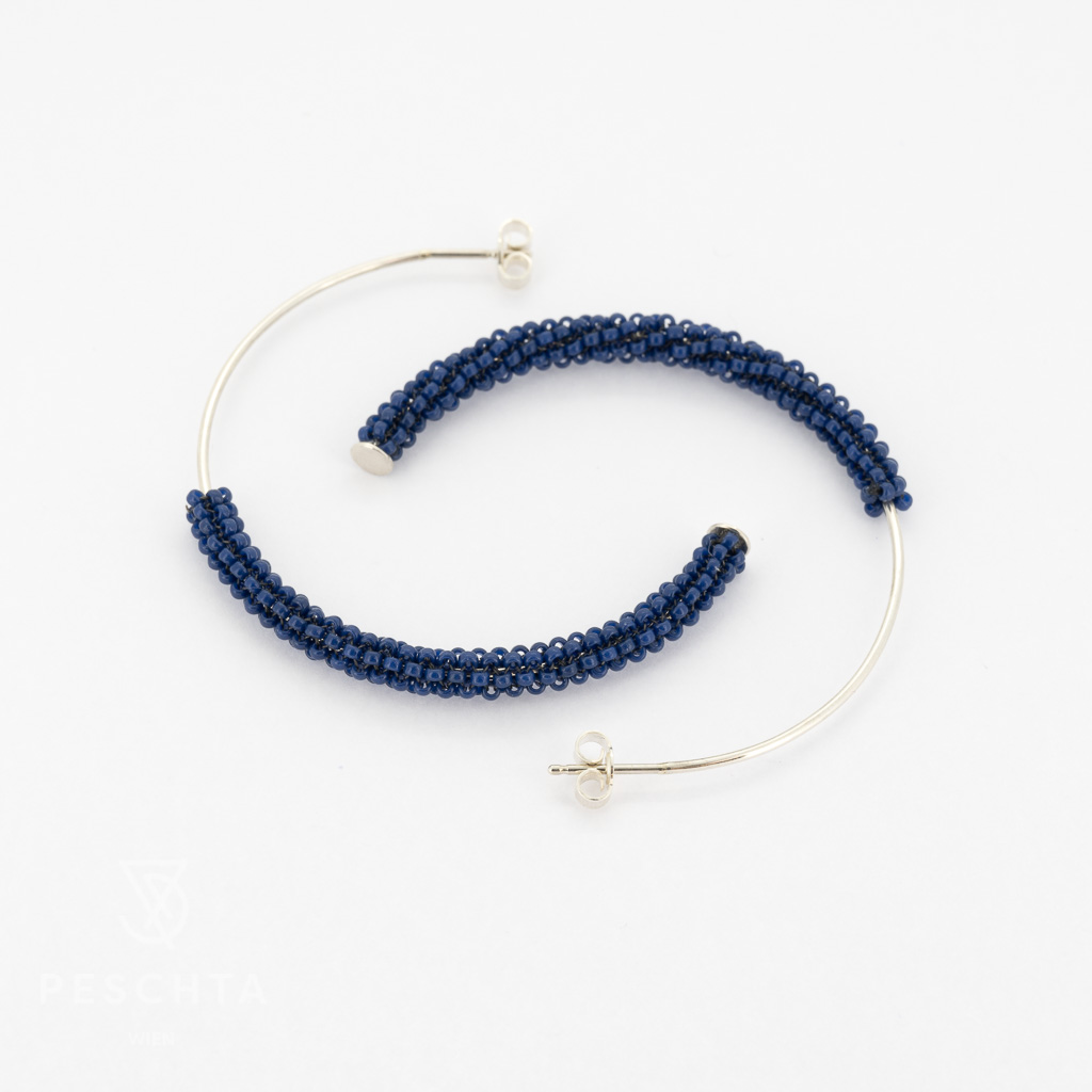 Creolen aus Silber 925 umrandet mit dunkelblauen Miyuki Perlen (feine japanische Glasperlen)