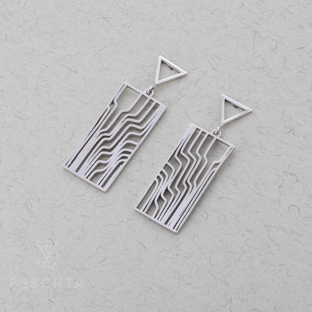 Ohrstecker, rhodiniert, Quadrat mit Struktur: 2 cm x 1 cm