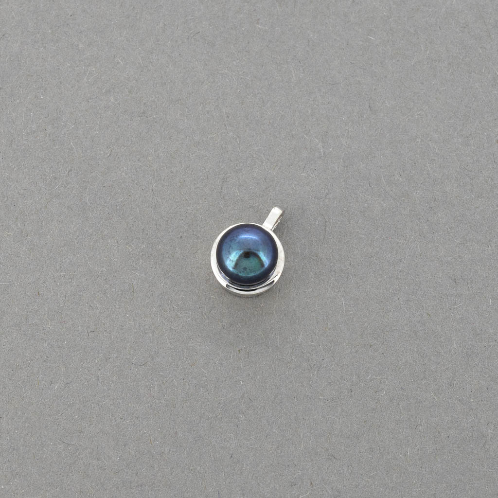 Anhänger aus 14 kt. Weißgold gefasst mit einer blau/schwarzen Perle. Der Durchmesser des Anhängers ist: 6 mm.