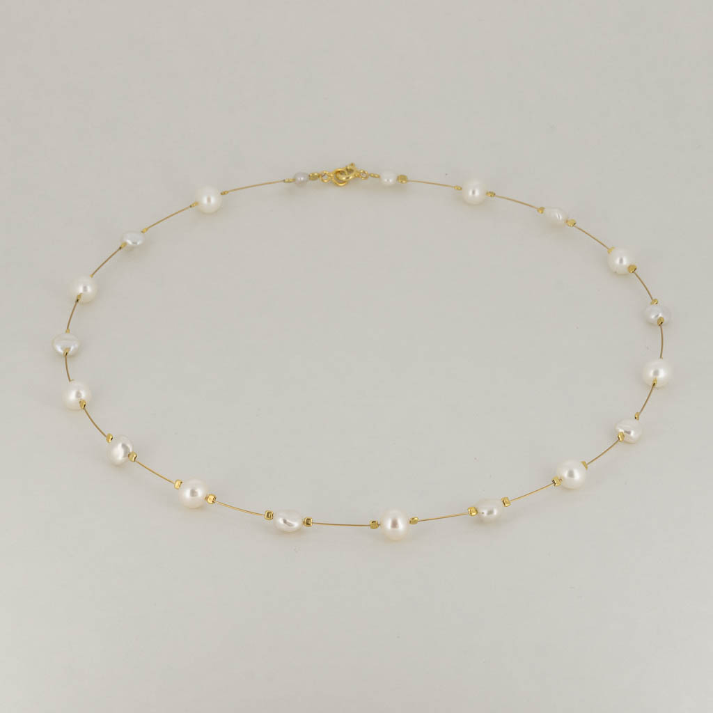 Halskette mit einem Draht aus Silber vergoldet mit Perlen.