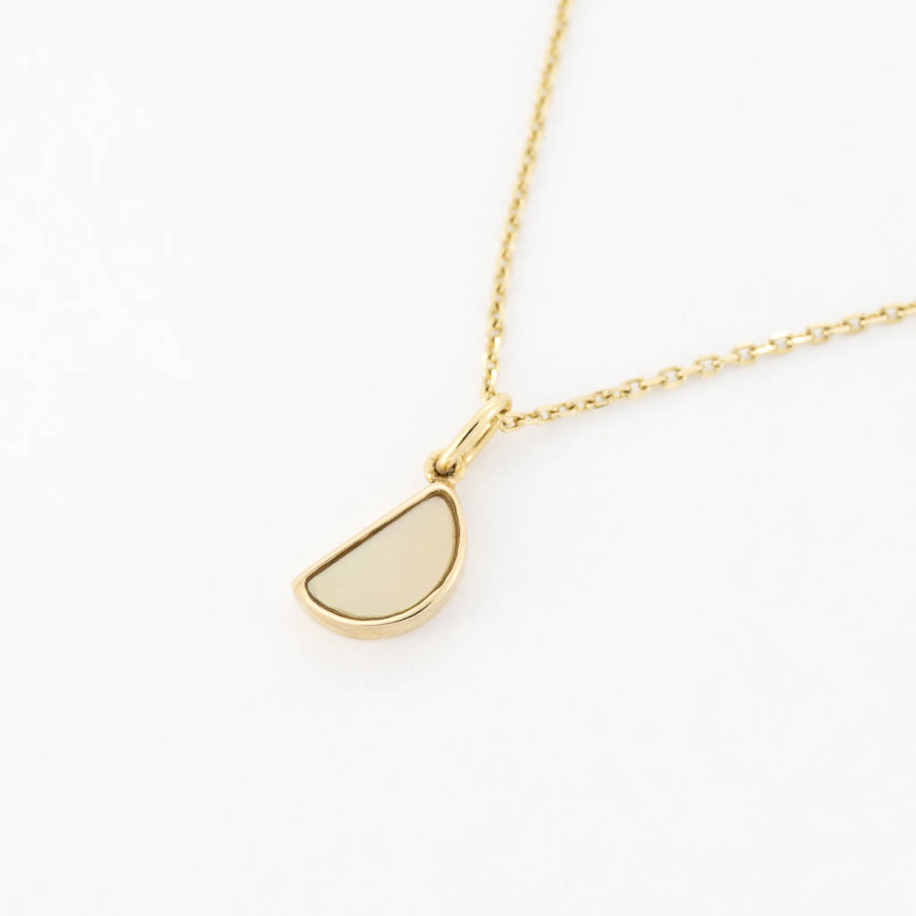 | Beschreibung: | Kettenanhänger in Halbmondform aus 14 kt. Gelbgold gefasst mit schimmerndem Perlmutt. |