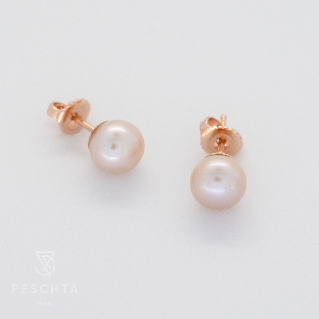 Ohrstecker aus 14 Karat Roségold mit 2 rosa Perlenboutons (Durchmesser: 7,7 mm)