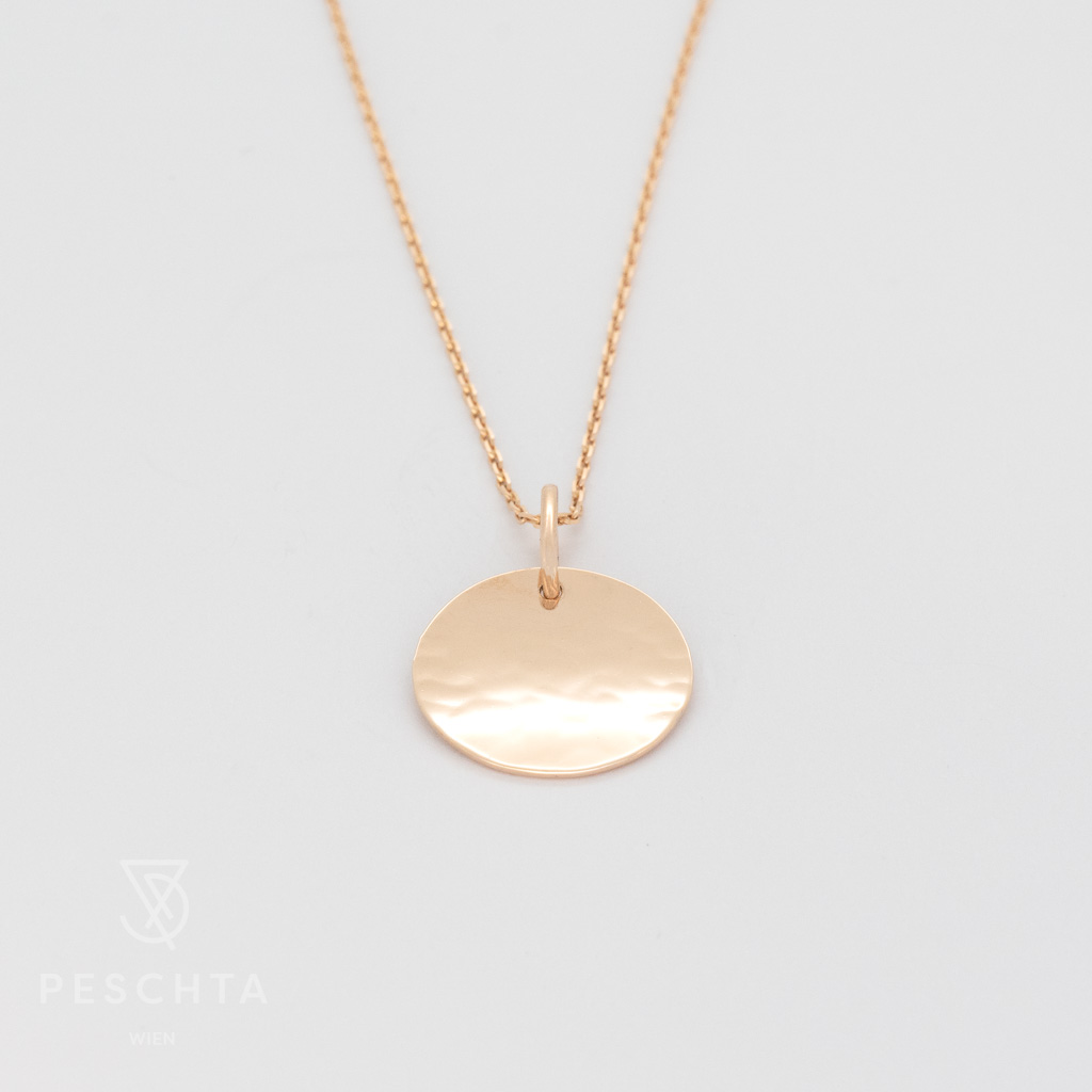 Anhänger aus 14 Karat Roségold Durchmesser: 1,3 cm Passende Ohrstecker und Ohrhänger finden Sie auch in unserem Shop Die Halskette auf dem Foto ist nicht im Preis inklusive