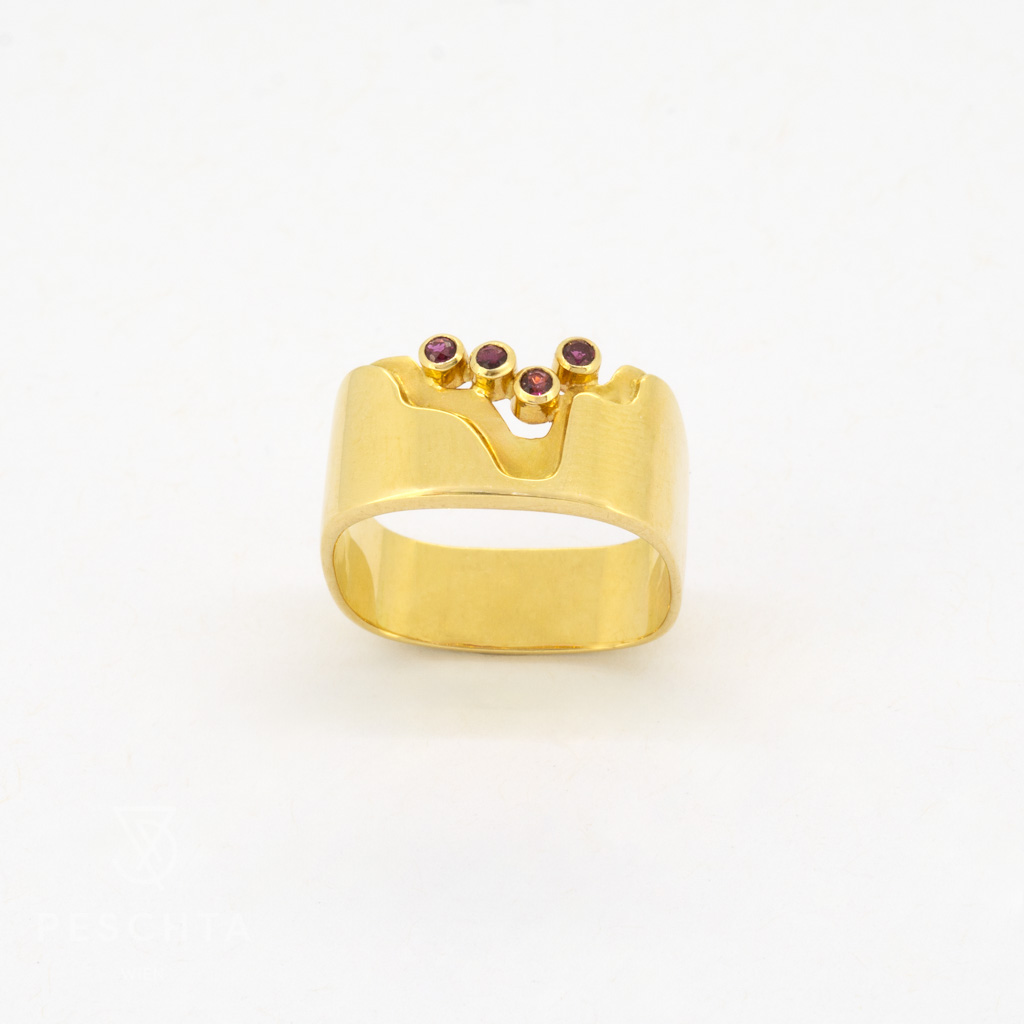 Ring aus 18 Karat Gelbgold, gefasst mit 4 kleinen Rubinen