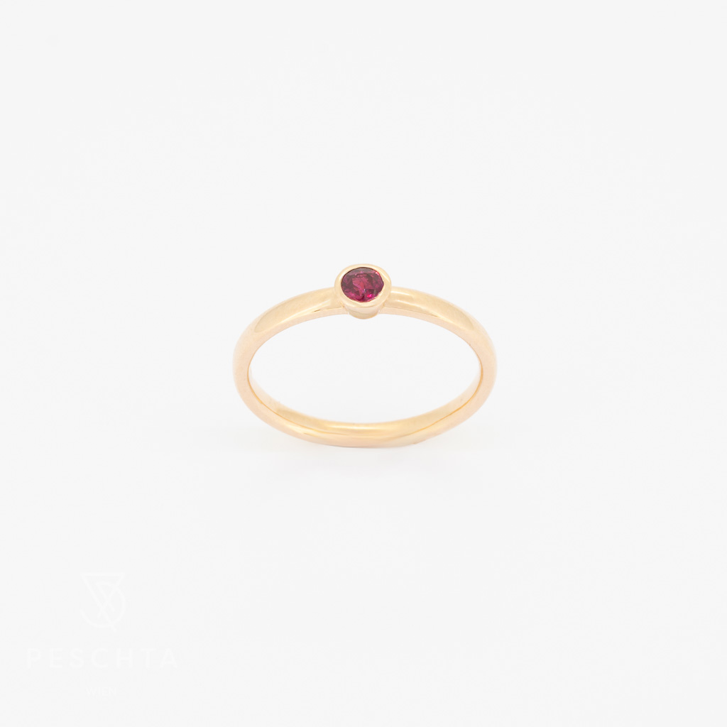 | Beschreibung: | Ring aus 14 Karat Roségold, gefasst mit einem pinken Rubin (0,17 ct.) |