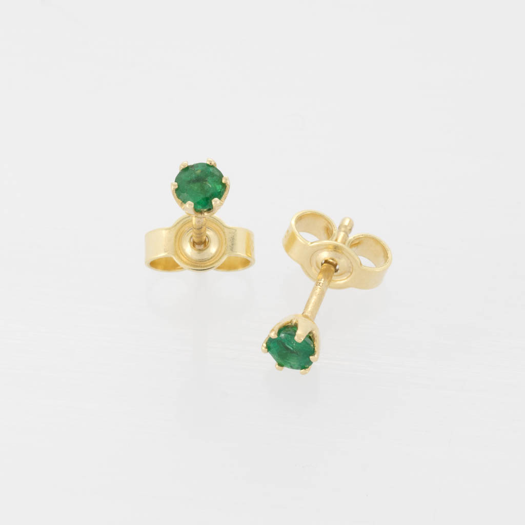 Ohrstecker aus 14 Karat Gelbgold, gefasst mit je einem Smaragd (3,6 mm Durchmesser)