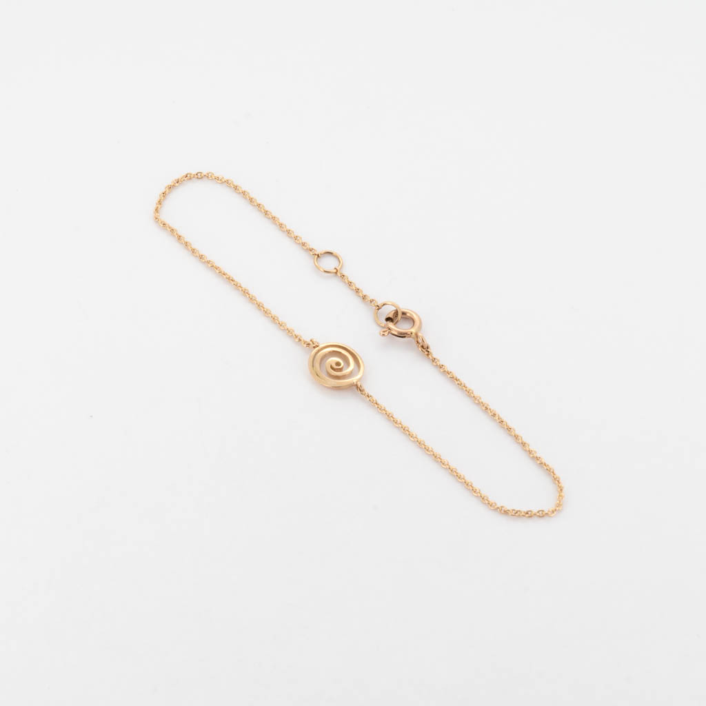 Zartes Armband mit einer Spirale in der Mitte (Durchmesser 8 mm). Die Gesamtlänge des Armbandes ist 18,5 cm. Einen passenden Ring, Anhänger und Ohrstecker finden Sie auch in unserem Sortiment.