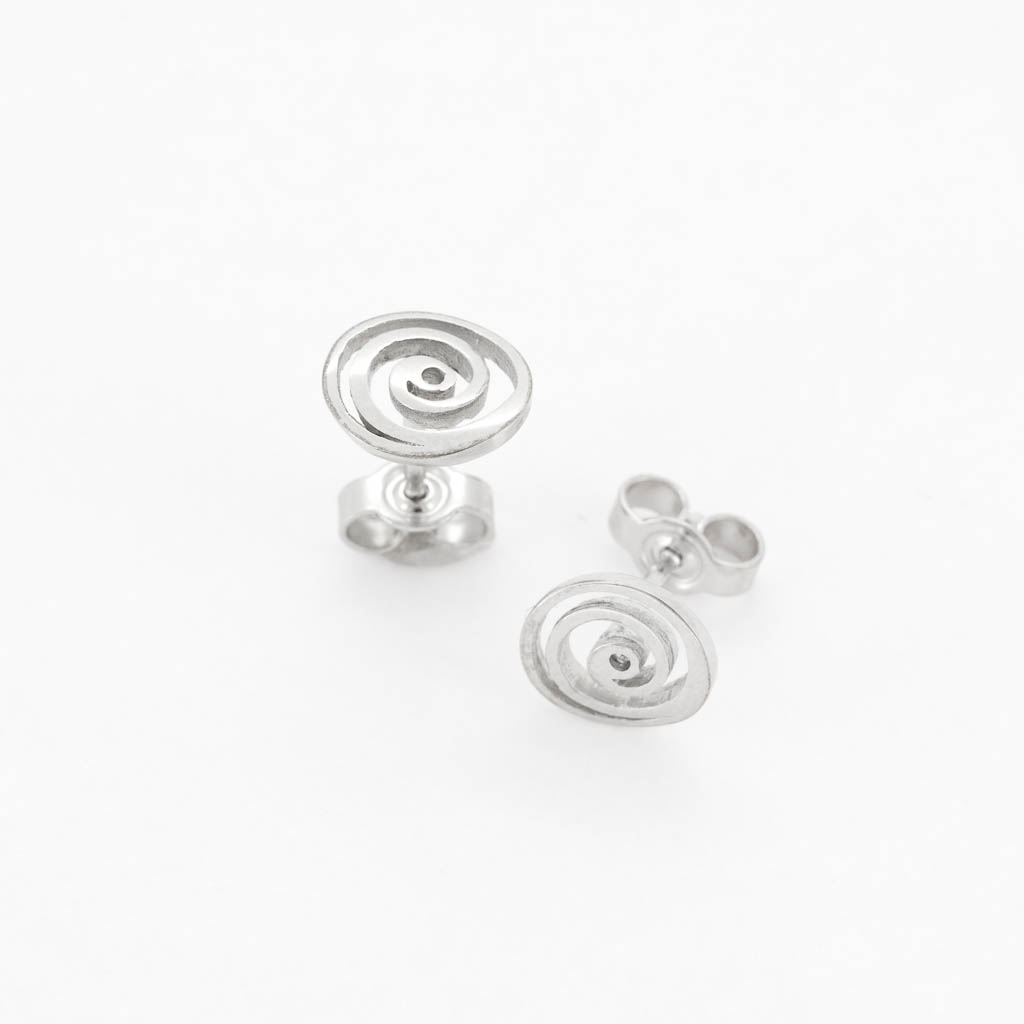 Ohrstecker in 14 kt. Weißgold in Spiralenform. Durchmesser: 8 mm.