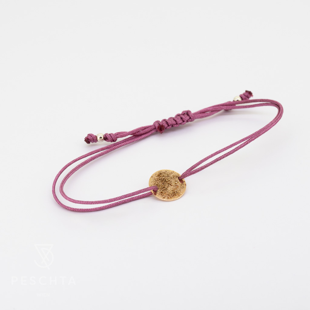 | Beschreibung: | Altrosa Armband mit einem strukturierten Plättchen aus 14 Karat Roségold |