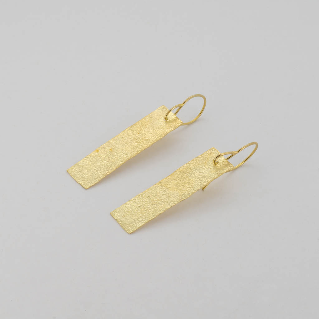 Schlichte Ohrhänger in Silber vergoldet mit strukturierter Oberfläche (4 cm x 1 cm)