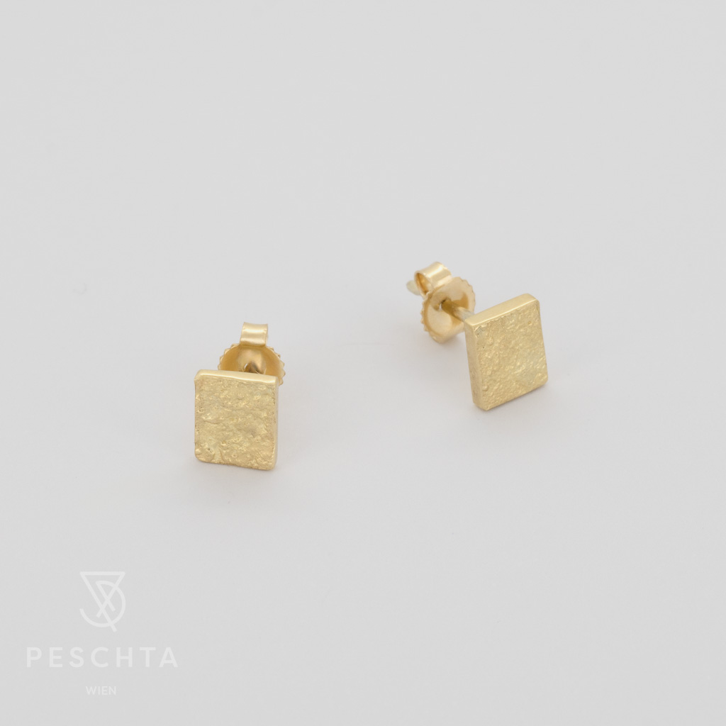 Ohrstecker mit einer strukturierten Oberfläche aus 14 Karat Gelbgold Breite: 6 mm x Höhe: 5 mm