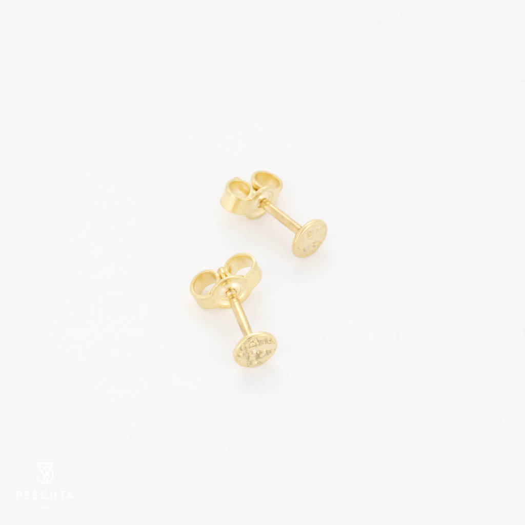 Runde Ohrstecker in 14 kt. Gelbgold mit Struktur – Feilung aufgeschmolzen, Durchmesser: 4 mm
