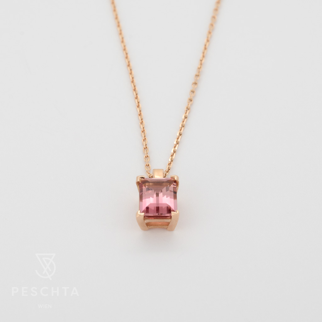 | Beschreibung: | Anhänger aus 14 Karat Roségold, gefasst mit einem rosa Turmalin Baguette 7 mm x 5 mm |