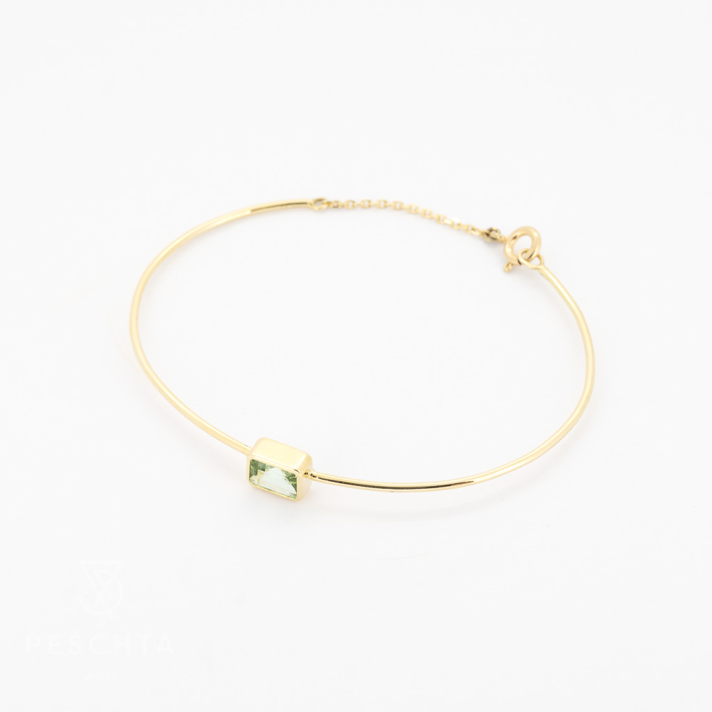Armreifen aus 14 Karat Gelbgold, gefasst mit einem hellgrünen Turmalin (7 mm x 5 mm) Breite Armreifen: 1,3 mm