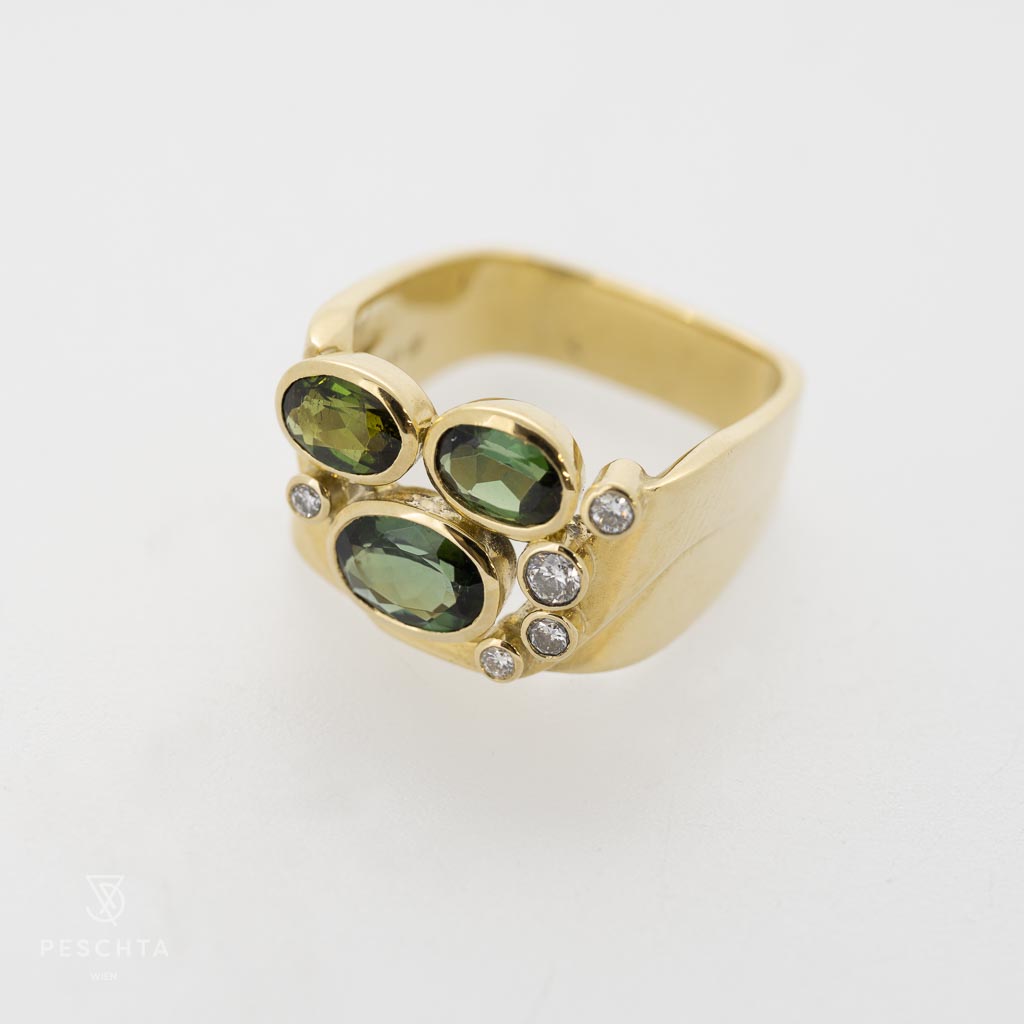 3 Turmaline grün, 5 Brillanten 0,135 ct