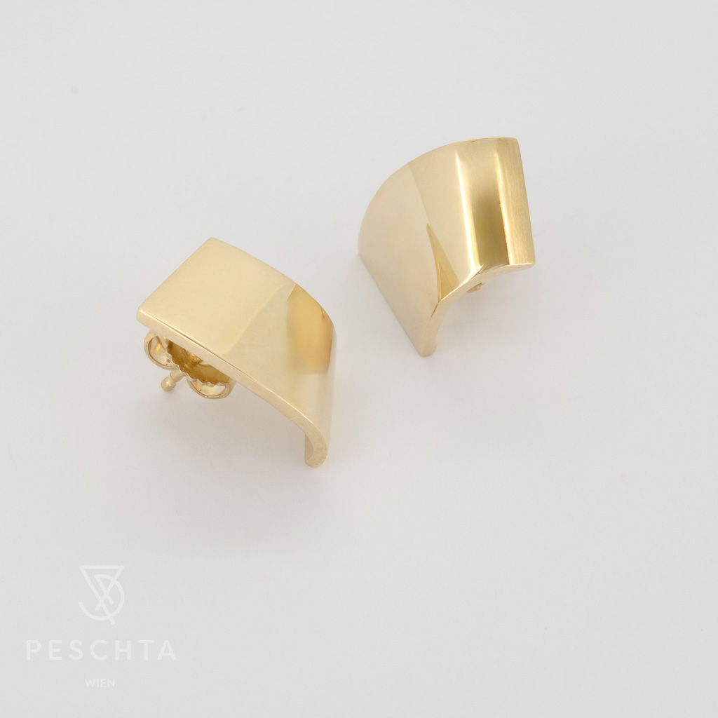 Geschwungene Ohrstecker aus 14 Karat Gelbgold Breite: 1 cm x Höhe: 1,3 cm